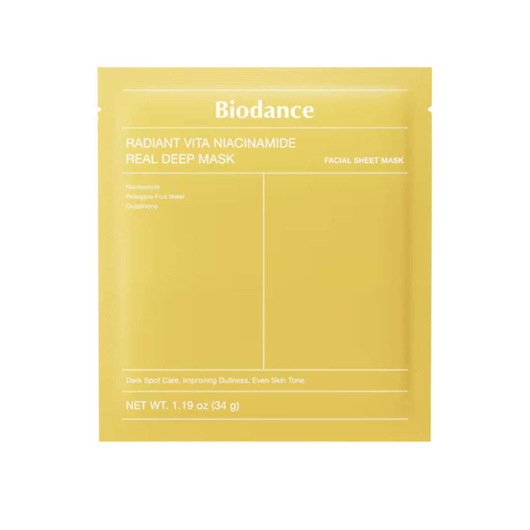 The Radiant Vita (Yellow) version is the brightening specialist of the Biodance hydrogel family. While the Pink mask firms and the Blue mask soothes, this version focuses on clarity and radiance. It combines high-purity Niacinamide with a potent “Brightening Cocktail” of Vitamin C and Glutathione to inhibit melanin production and fade existing spots. Using the same “essence-solidified” hydrogel technology, the mask stays on for hours, ensuring these unstable vitamins are delivered deep into the skin without oxidizing on the surface. As the mask turns transparent, it leaves the skin looking visibly “lit from within” and remarkably clear.